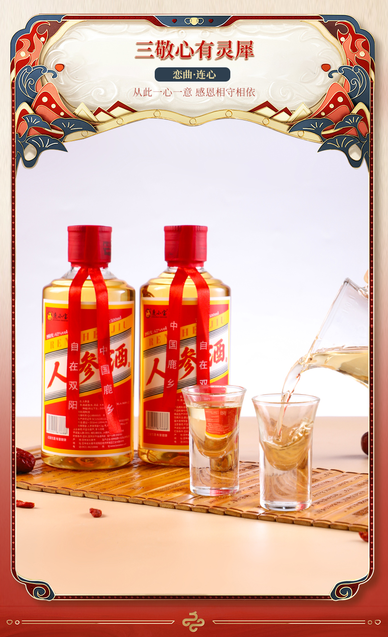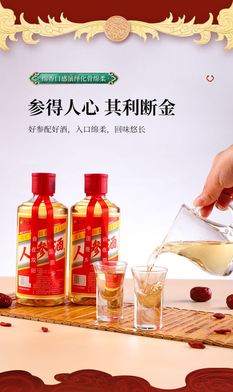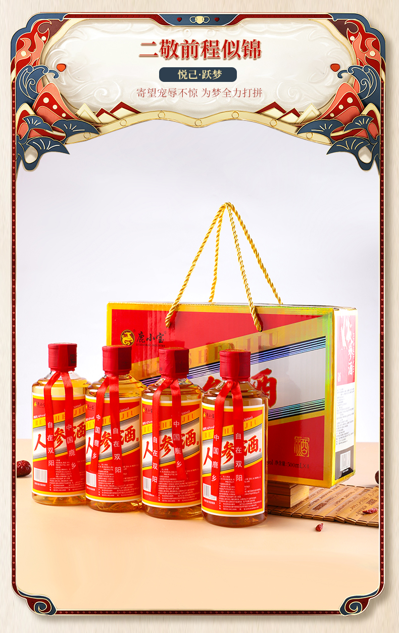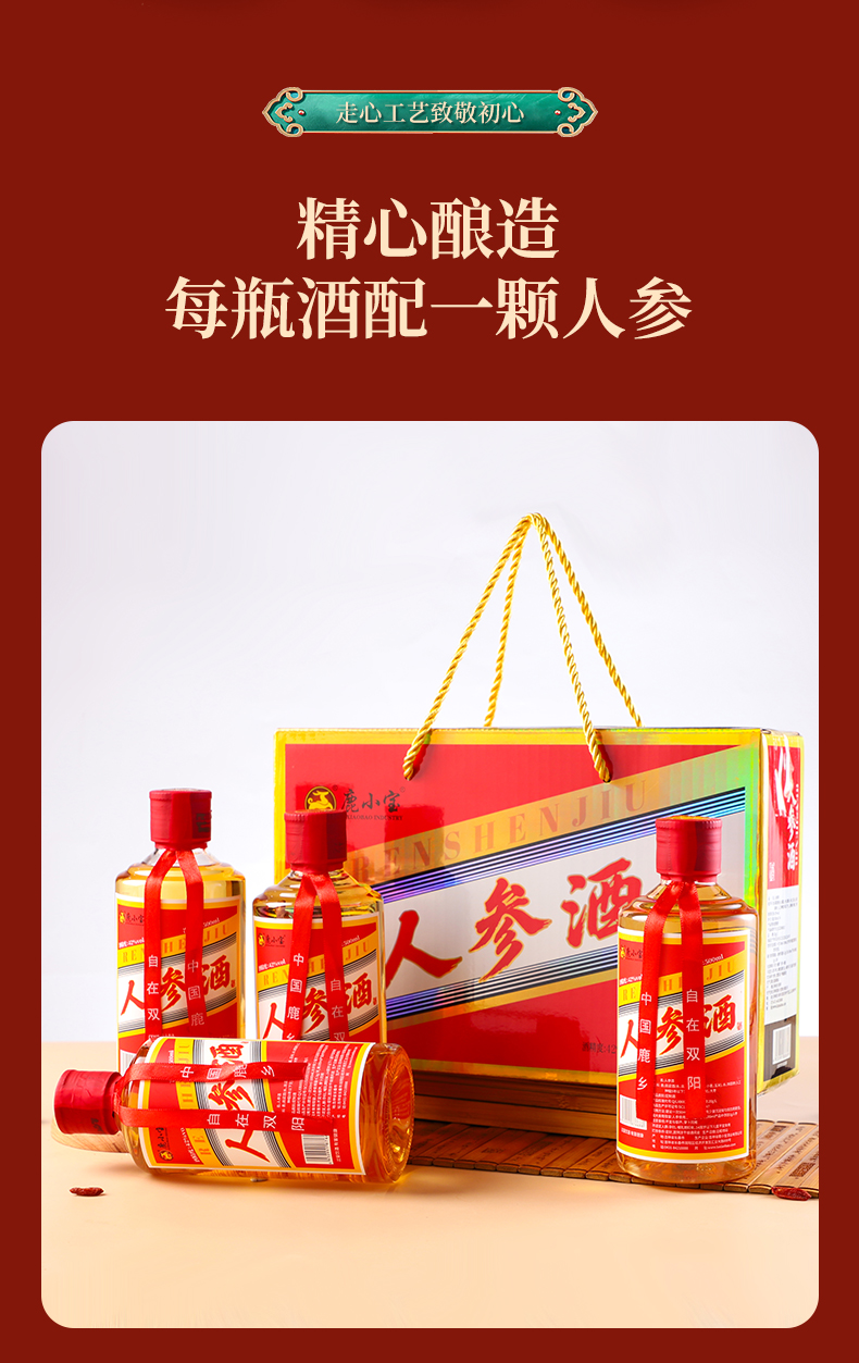 鹿小宝品牌----此产品为4瓶装鹿鞭酒,每瓶都有一颗人参,即为电商爆款,小而强悍,深度滋养调理,自饮送礼之上选.
