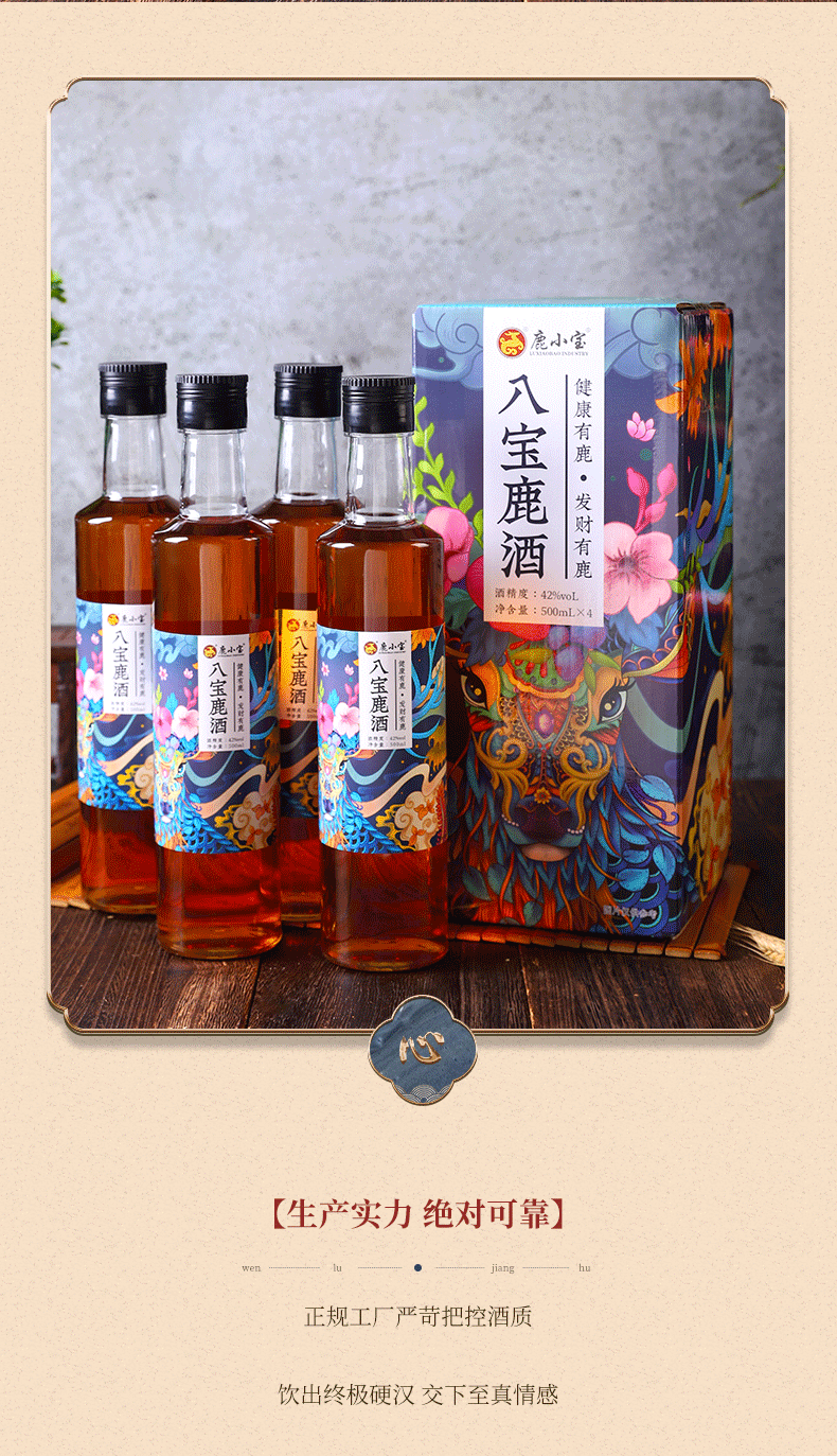 鹿小宝品牌----此产品为八宝鹿酒,即为电商爆款,小而强悍,送礼更大气,自饮送礼之上选.